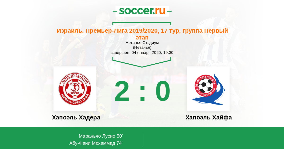 Протокол матча Хапоэль Хадера против Хапоэль Хайфа