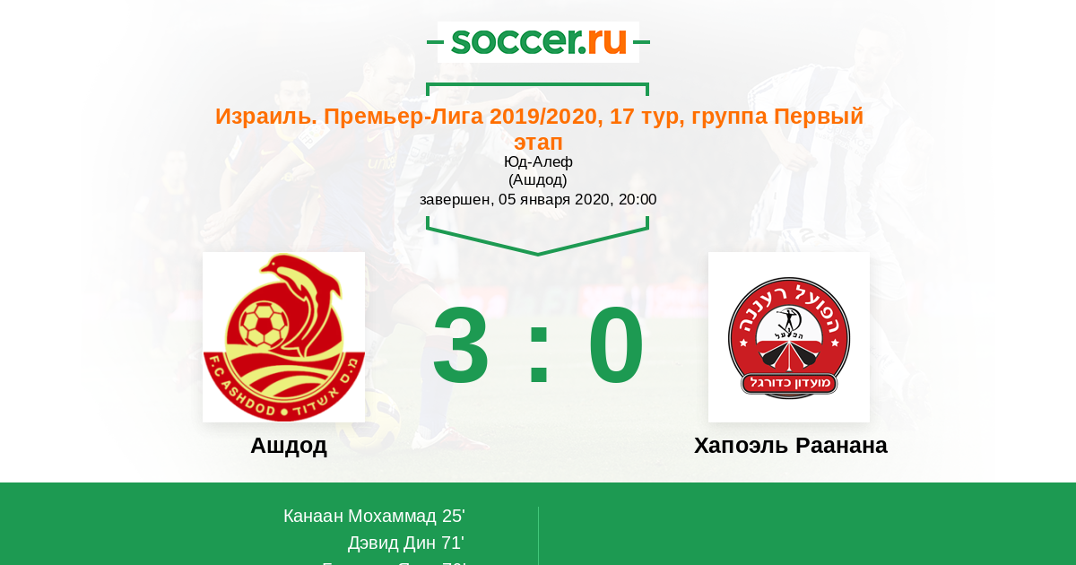 Протокол матча Ашдод против Хапоэль Раанана