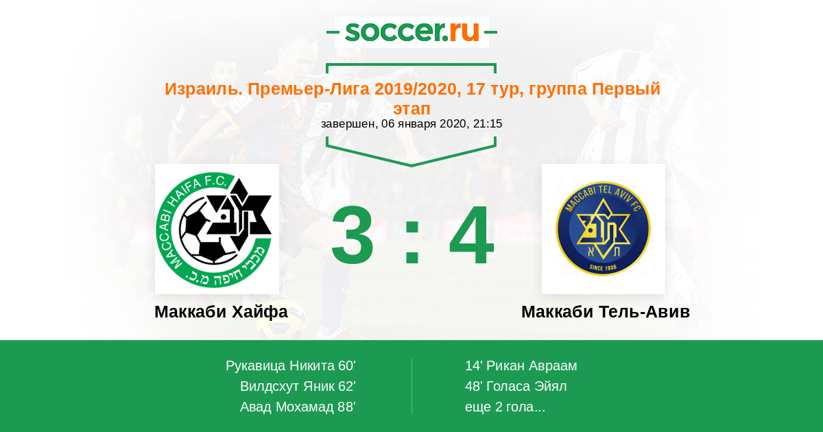 Протокол матча Маккаби Хайфа против Маккаби Тель-Авив