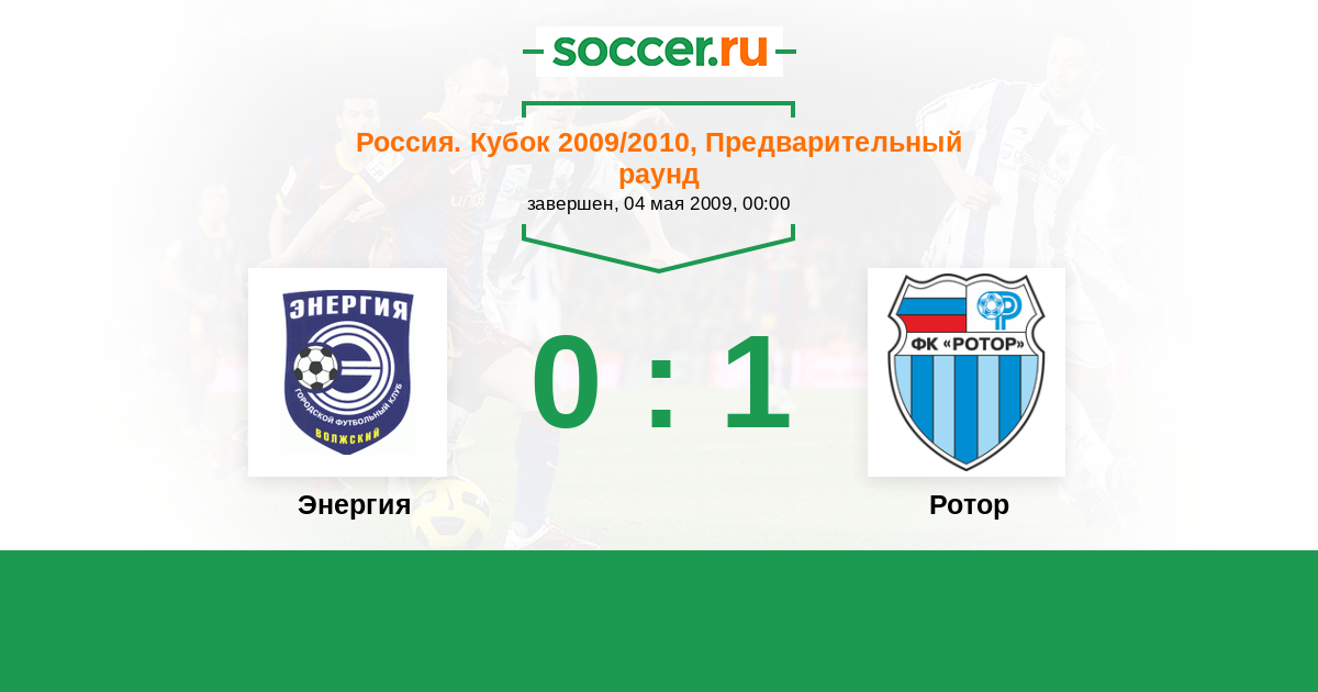 Россия. Вторая лига. Группа 1 05.07.2009 Ротор Логотип футбольный клуб Ротор (Волгоград) 1:1 Логотип футбольный клуб Энергия (Волжский) Энергия