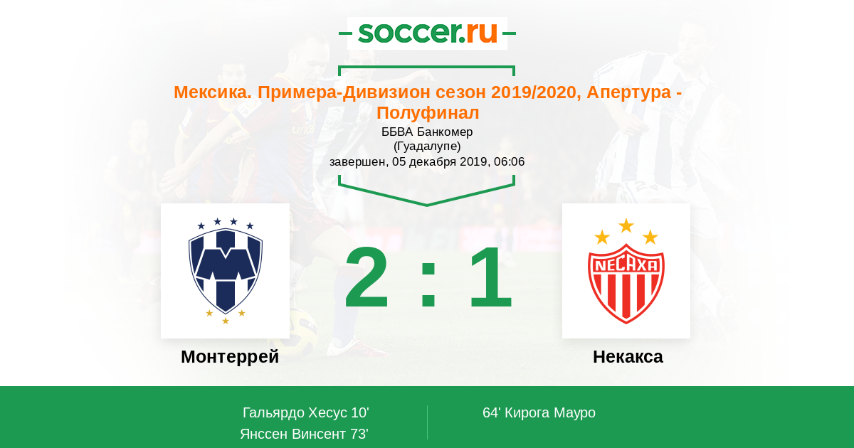 Протокол матча Монтеррей против Некакса