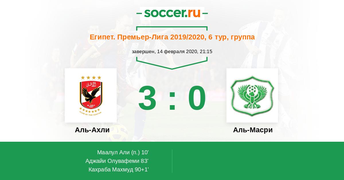 Протокол матча Аль-Ахли против Аль-Масри