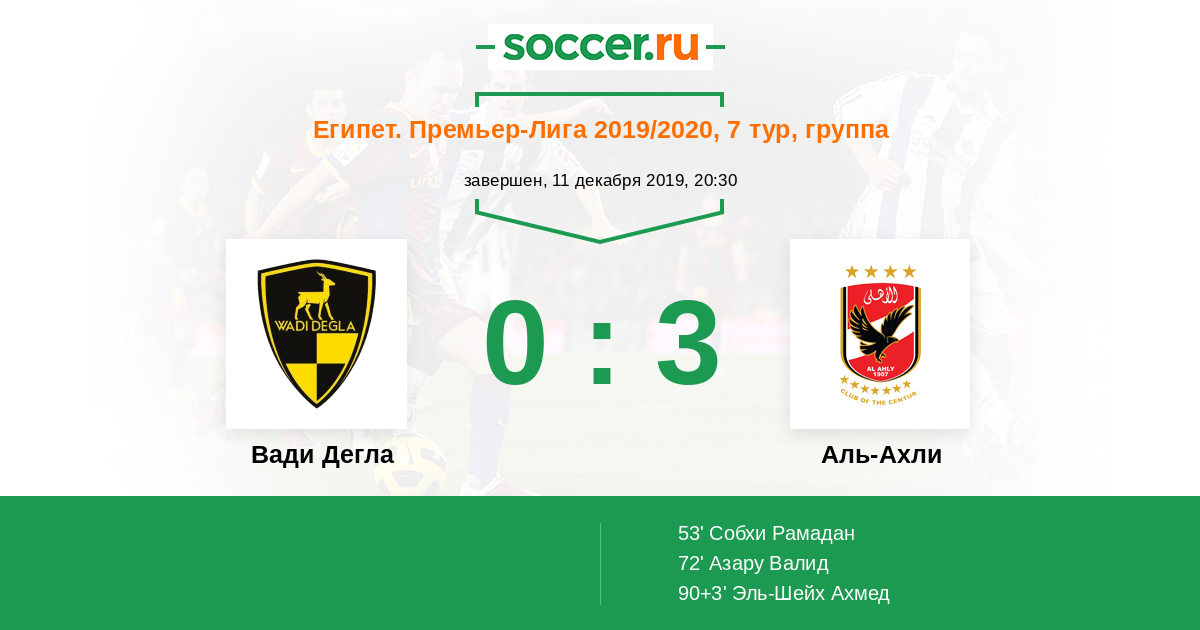 Протокол матча Вади Дегла против Аль-Ахли