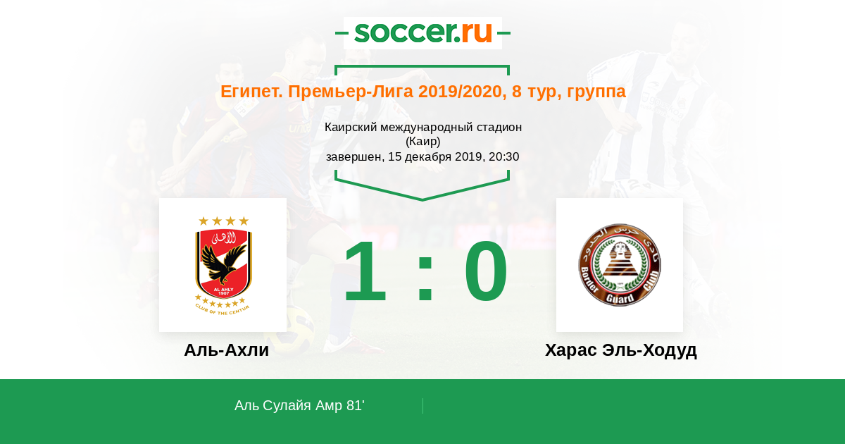 Протокол матча Аль-Ахли против Харас Эль-Ходуд