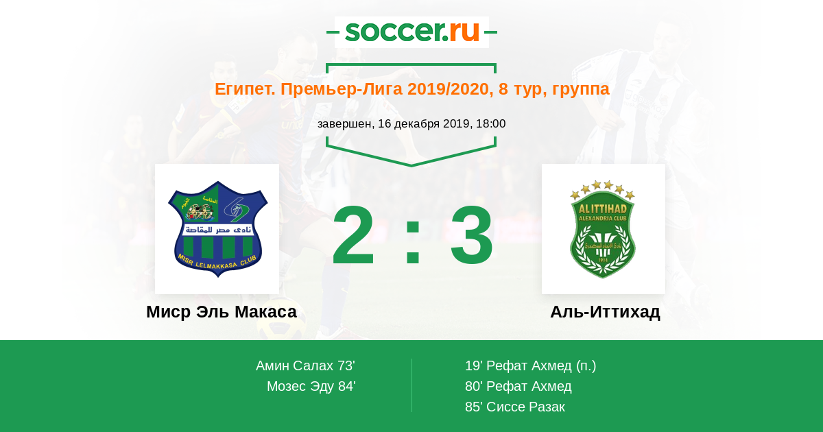 Протокол матча Миср Эль Макаса против Аль-Иттихад