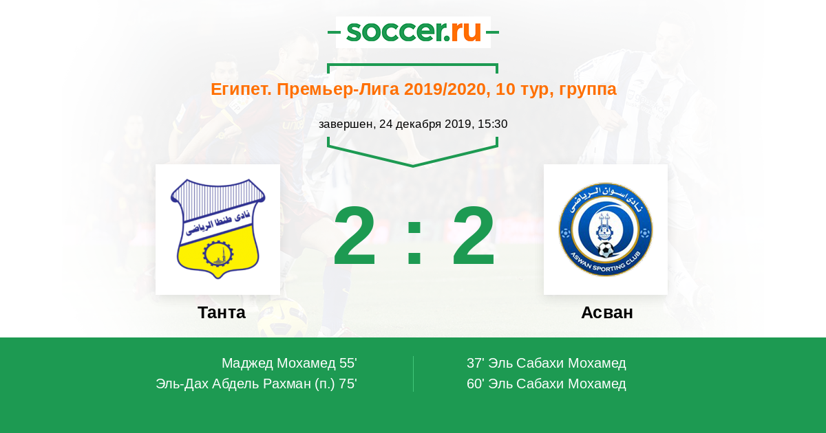 Протокол матча Танта против Асван