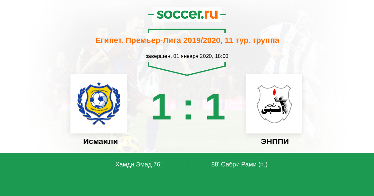 76' (1:0) Хамди Эмад (4) (Хашем Мохамед (29))