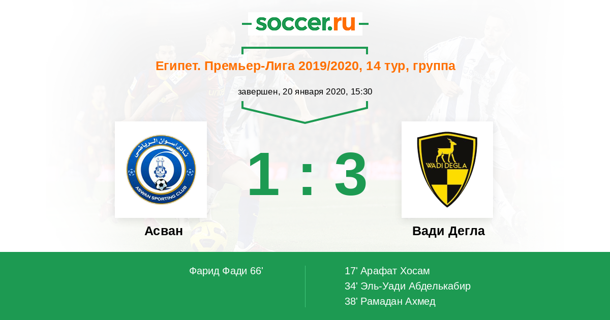 34' (0:2) Эль-Уади Абделькабир (22) (Рамадан Ахмед (30))