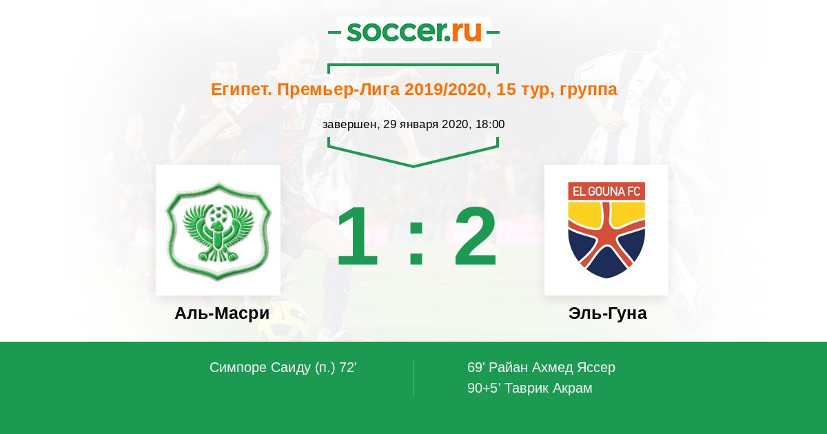 Протокол матча Аль-Масри против Эль-Гуна