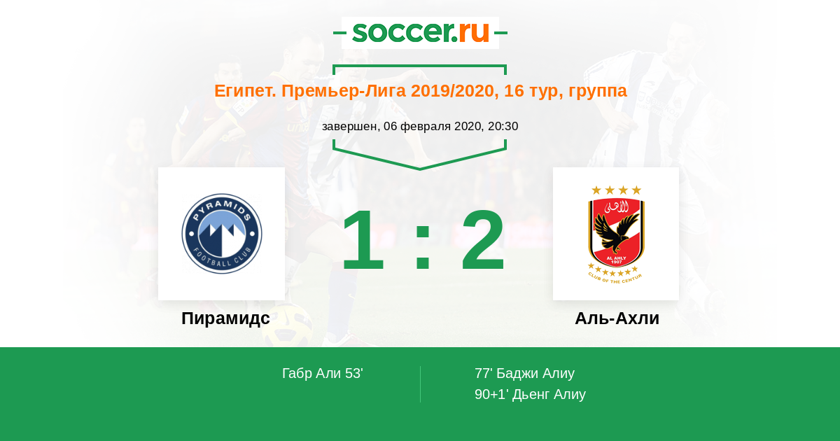 Протокол матча Пирамидс против Аль-Ахли