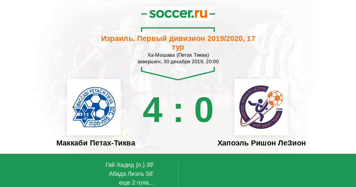 Протокол матча Маккаби Петах-Тиква против Хапоэль Ришон ЛеЗион