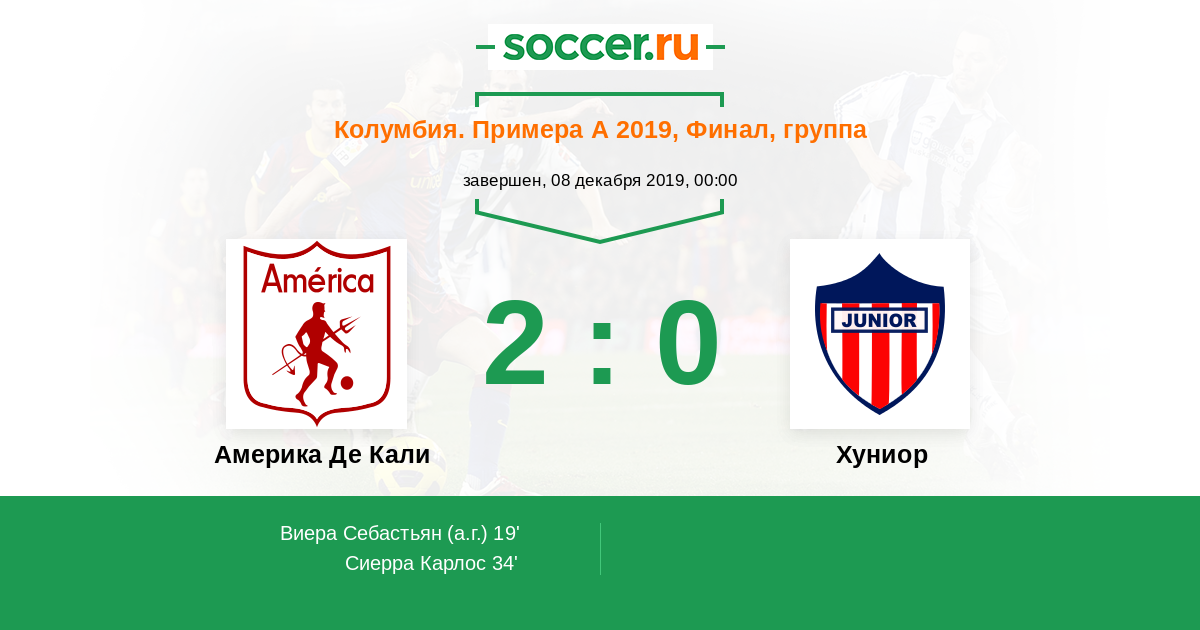 Протокол матча Америка Де Кали против Хуниор