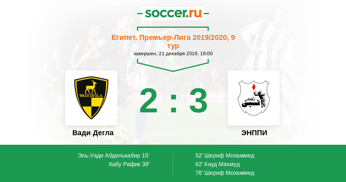 Протокол матча Вади Дегла против ЭНППИ