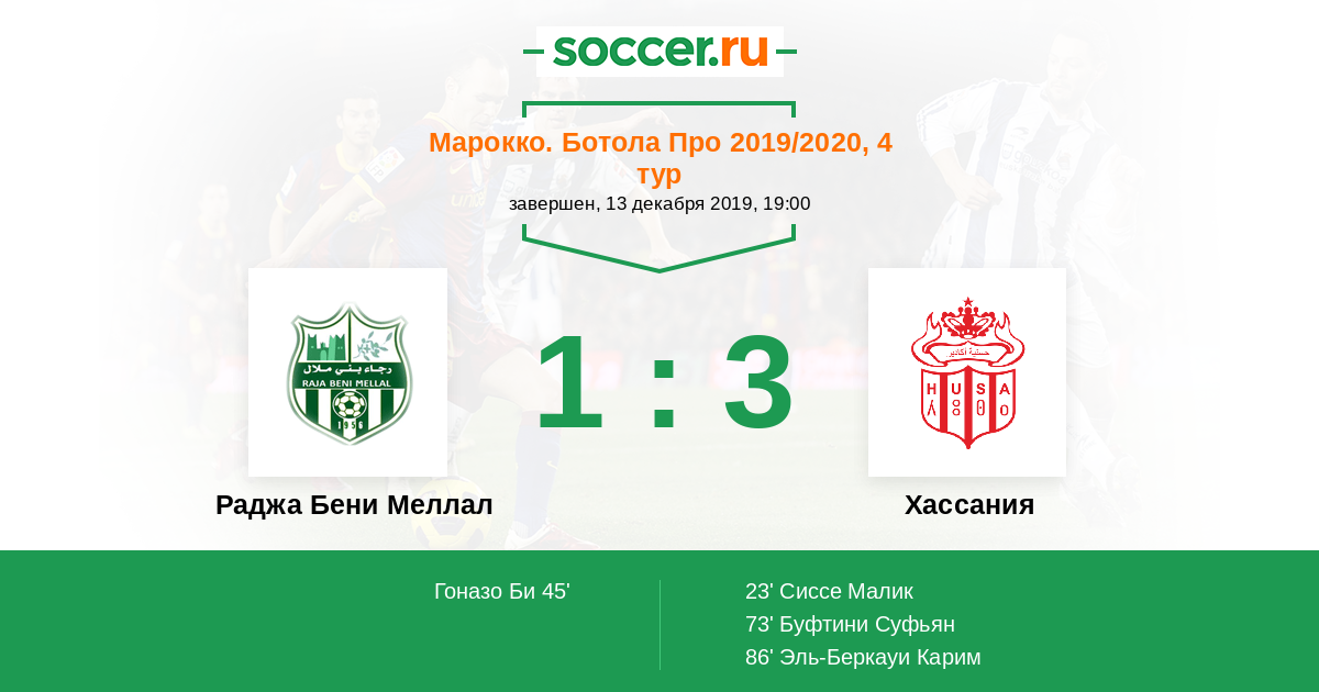 Протокол матча Раджа Бени Меллал против Хассания