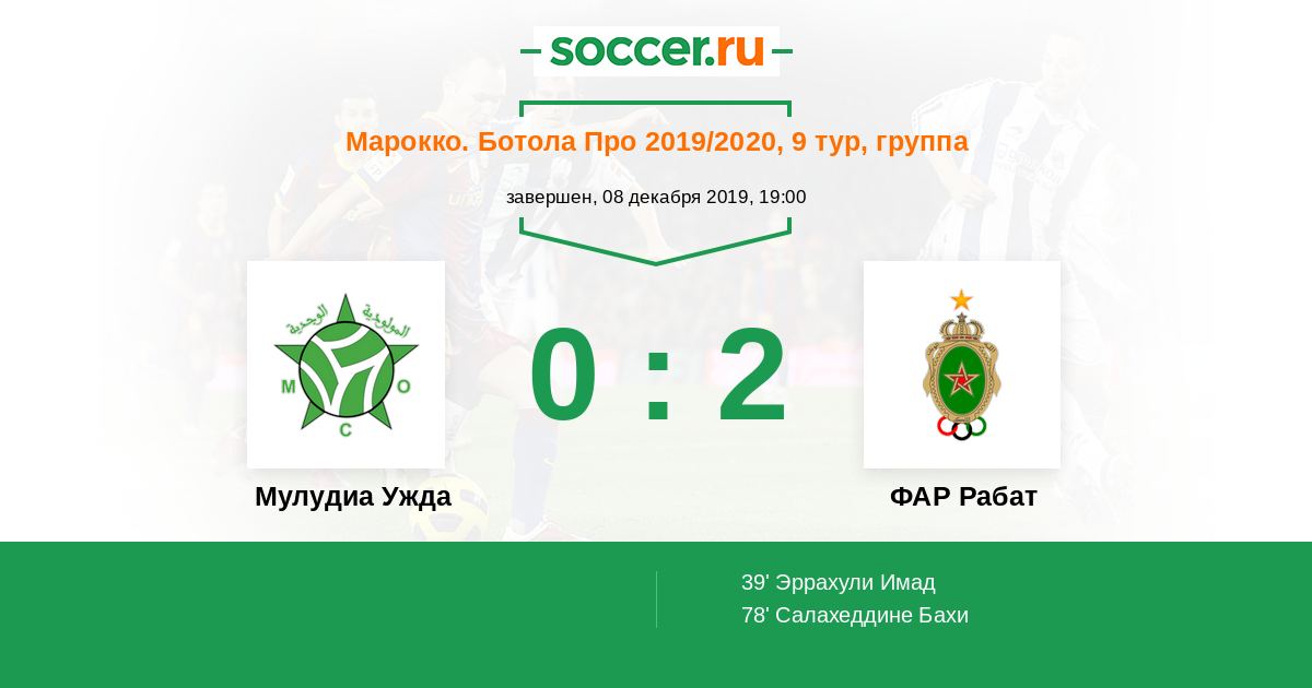 Протокол матча Мулудиа Ужда против ФАР Рабат