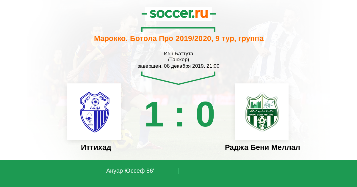 Протокол матча ИР Анже против Раджа Бени Меллал