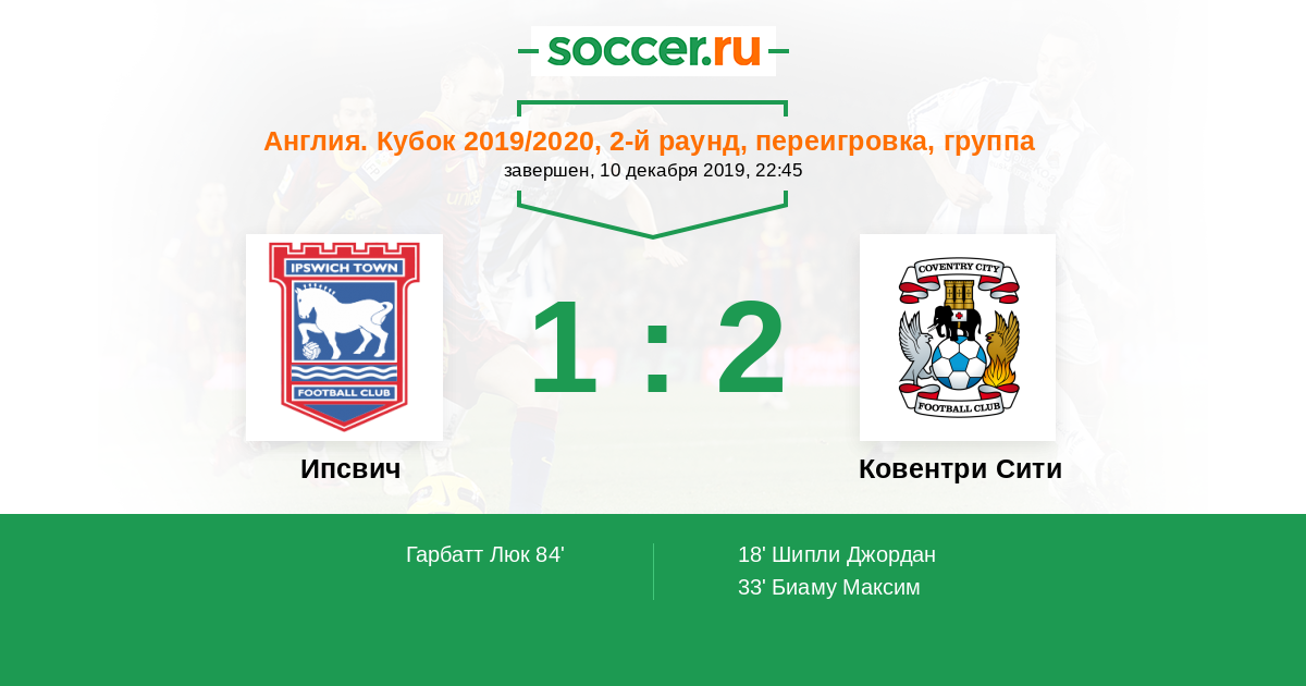 Протокол матча Ипсвич против Ковентри Сити