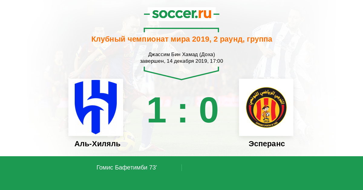 Протокол матча Аль-Хиляль против Эсперанс