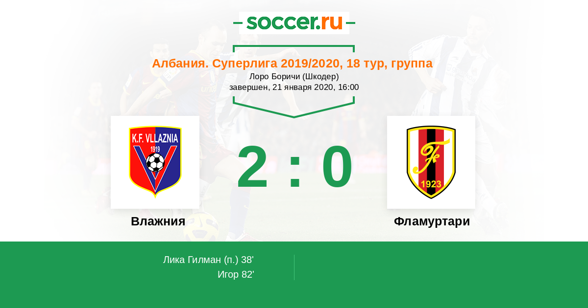 Протокол матча Влажния против Фламуртари