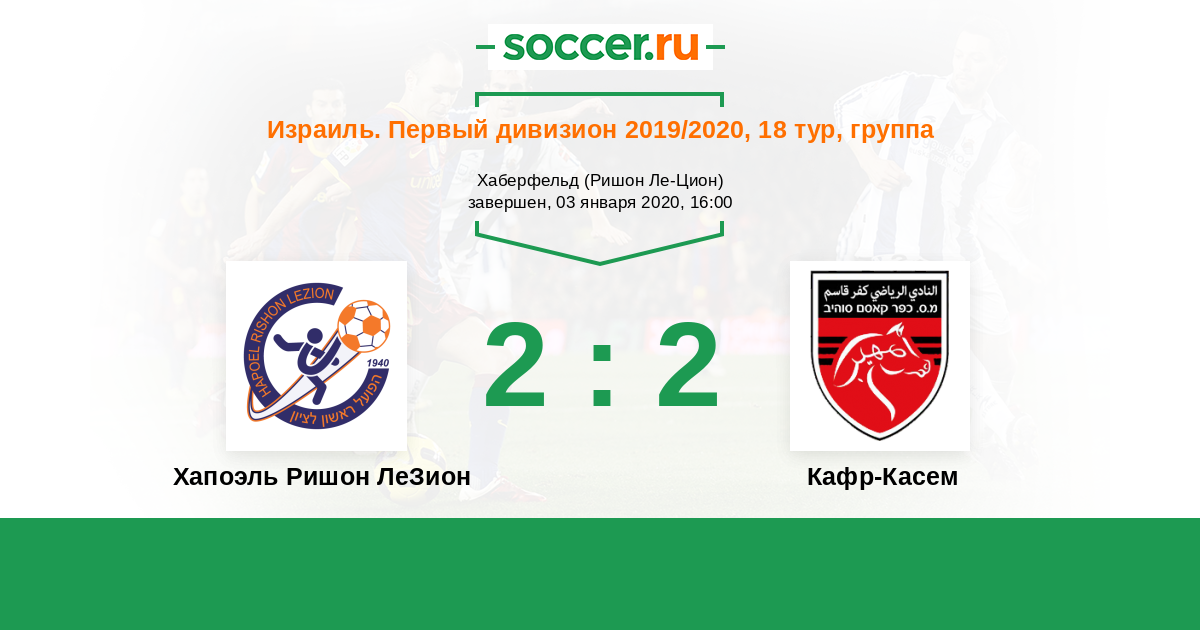 Израиль. Первый дивизион 28.12.2021 Кафр-Касем Логотип футбольный клуб Кафр-Касем 2:1 Логотип футбольный клуб Хапоэль Ришон ЛеЗион Хапоэль Ришон ЛеЗион
