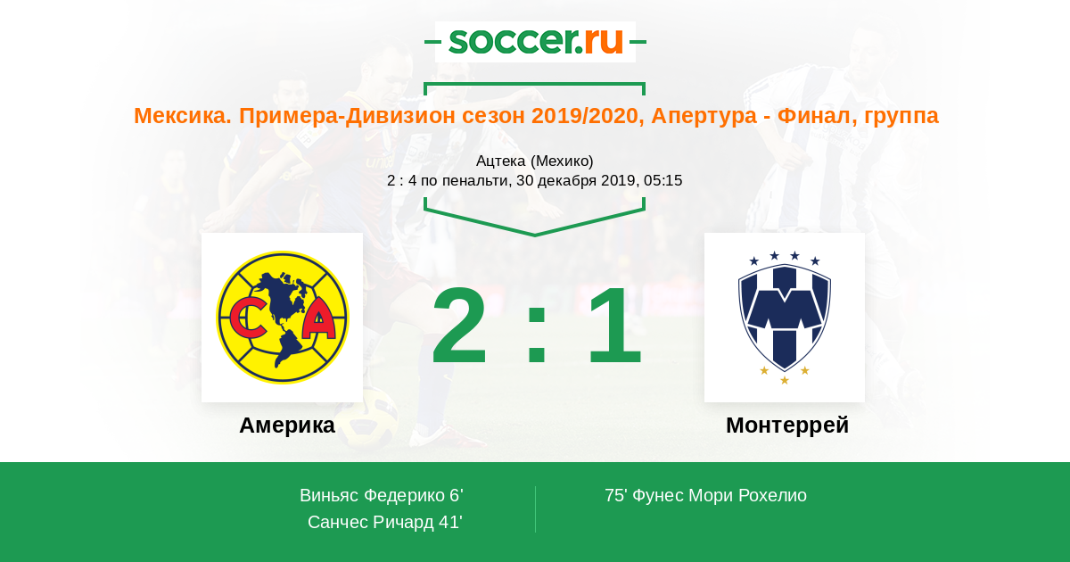 Протокол матча Америка против Монтеррей