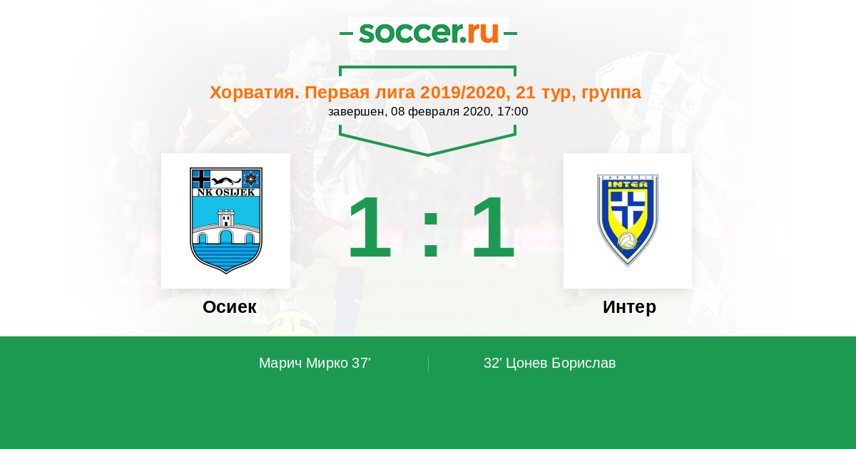 Протокол матча Осиек против Интер