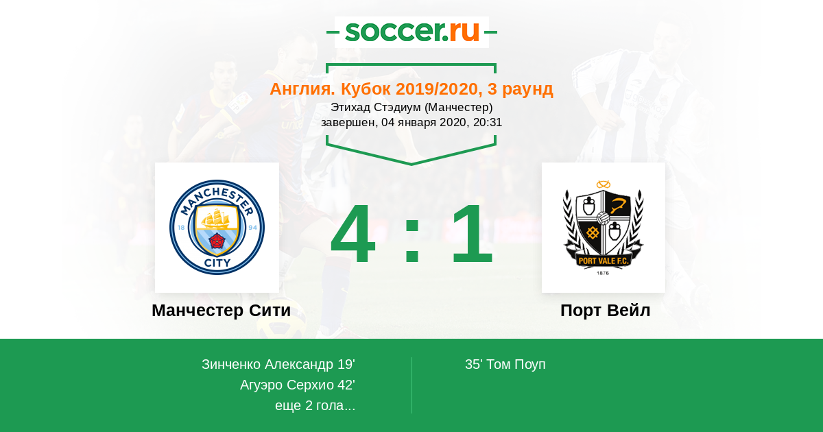 42' (2:1) Агуэро Серхио (10) (Фоден Фил (47))