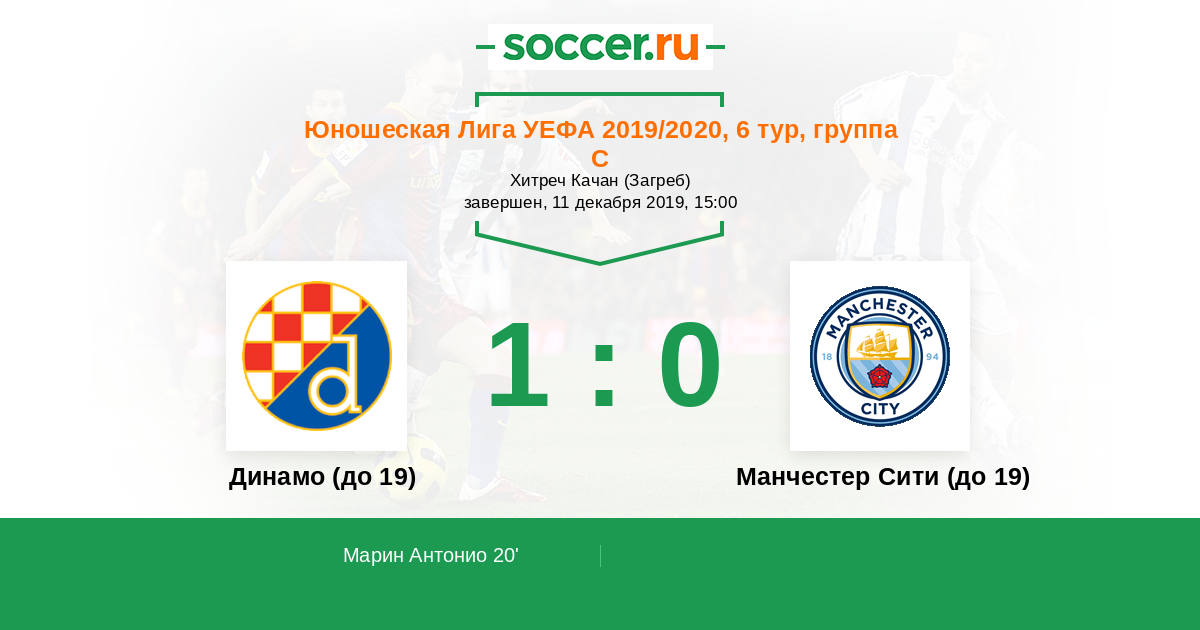 Протокол матча Динамо (до 19) против Манчестер Сити (до 19)