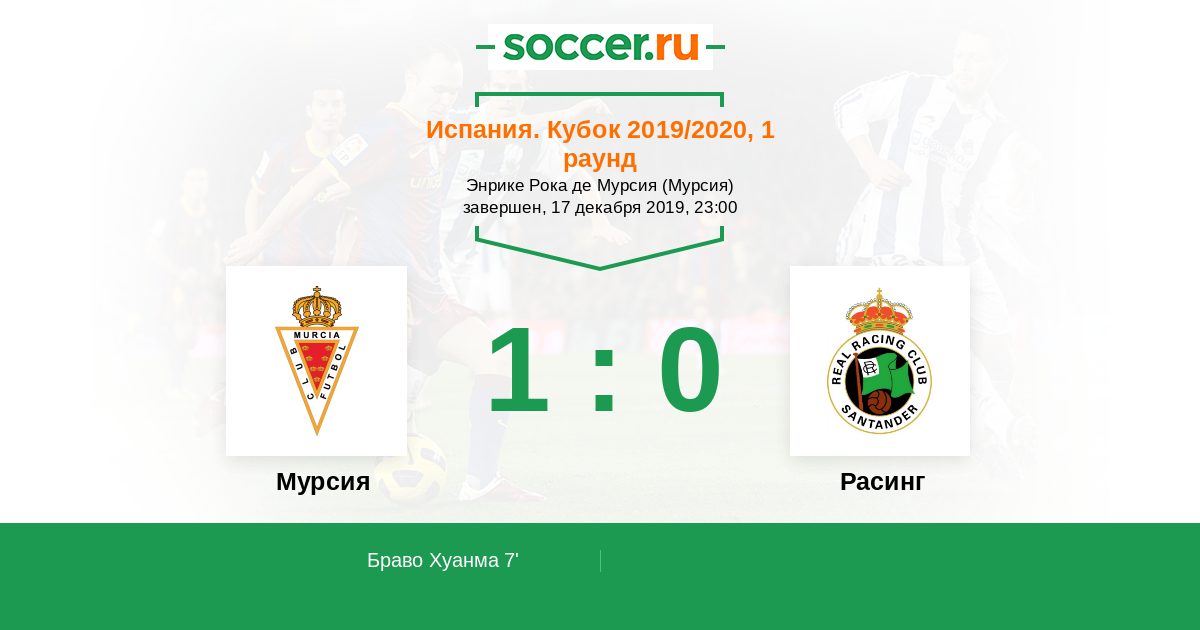 Протокол матча Мурсия против Расинг