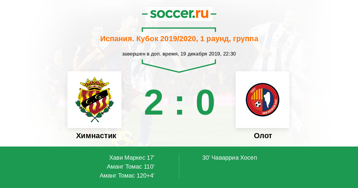 Протокол матча Химнастик против Олот