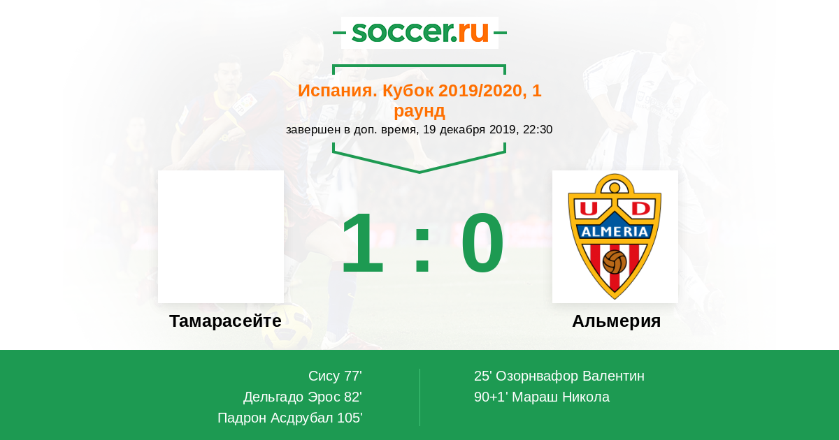 Протокол матча Тамарасейте против Альмерия