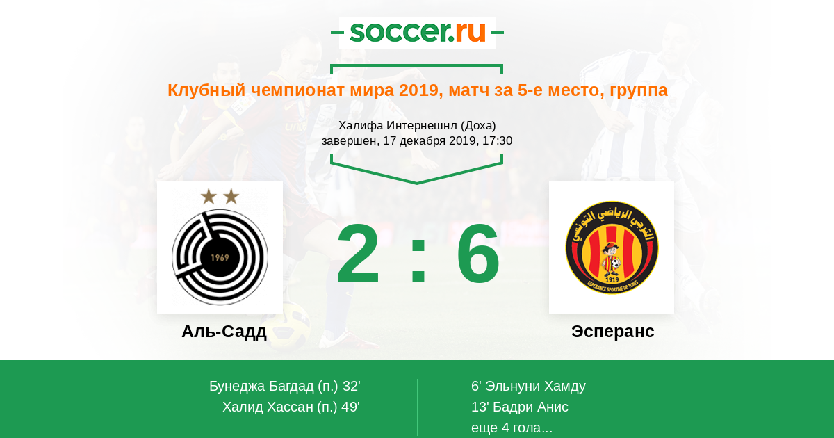 Протокол матча Аль-Садд против Эсперанс