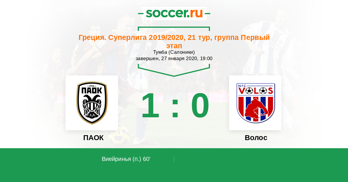 Протокол матча ПАОК против Волос