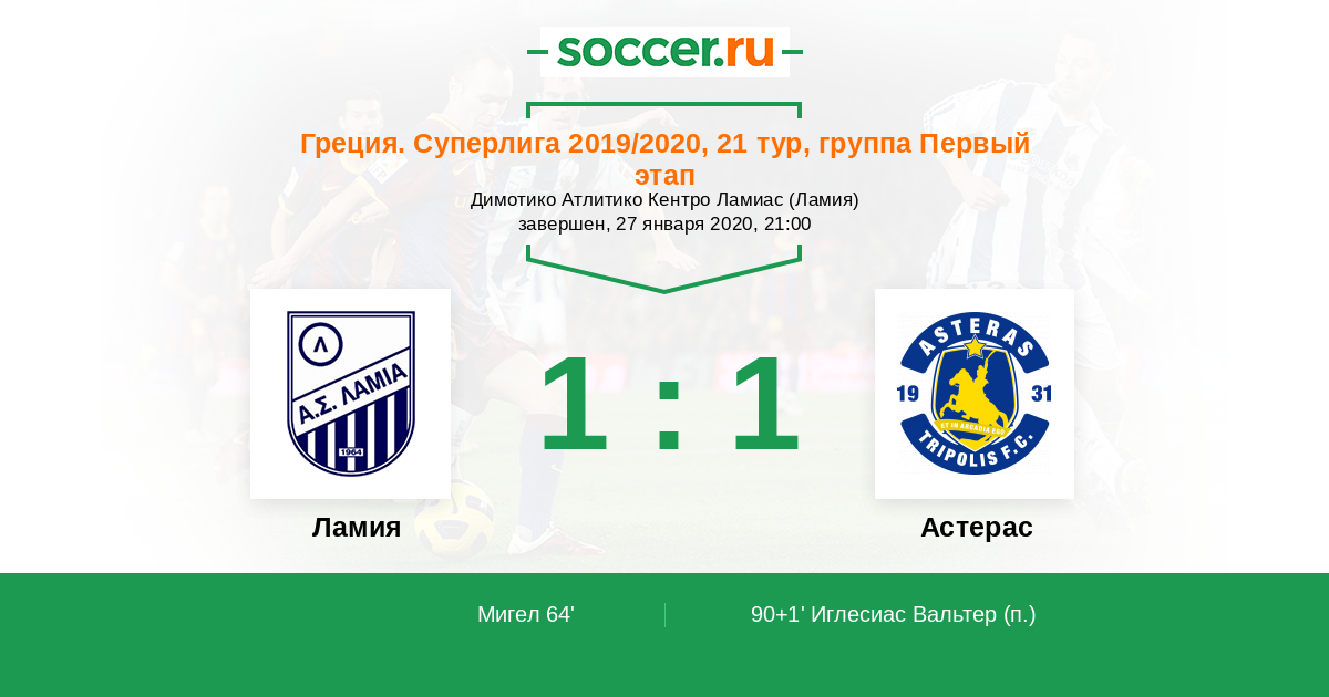 64' (1:0) Мигел (9) (Романич Лазар (18))