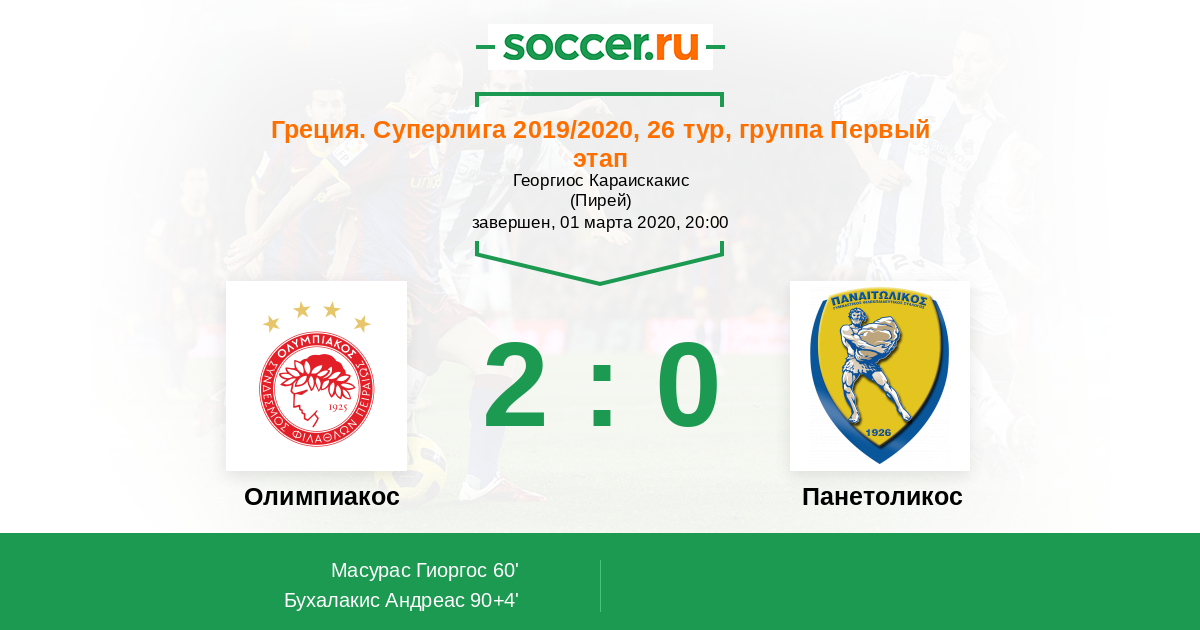 Протокол матча Олимпиакос против Панетоликос