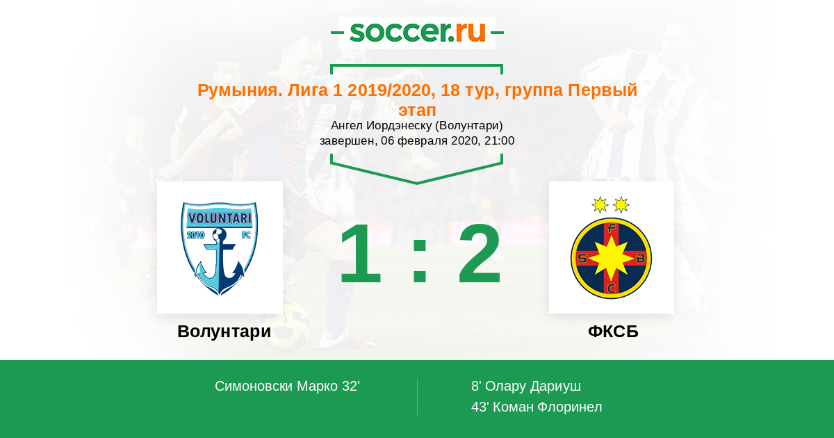 8' (0:1) Олару Дариуш (27) (Кристя Юлиан (17))