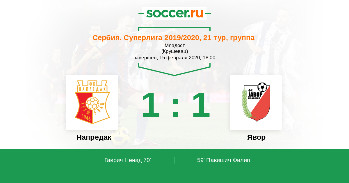 Протокол матча Напредак против Явор