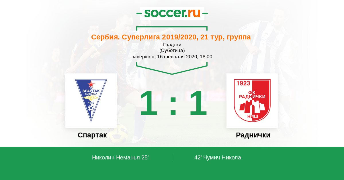 Протокол матча Спартак Суботица против Раднички