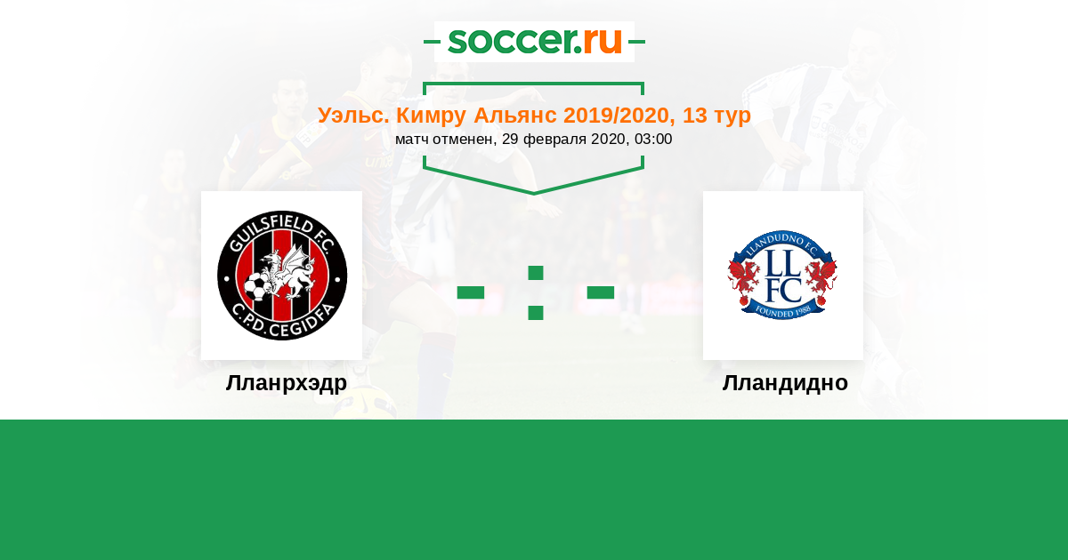 История матча Лланрхэдр против Лландудно