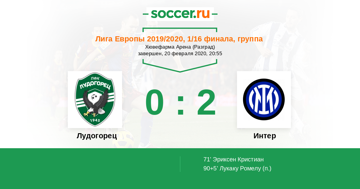 Протокол матча Лудогорец против Интер
