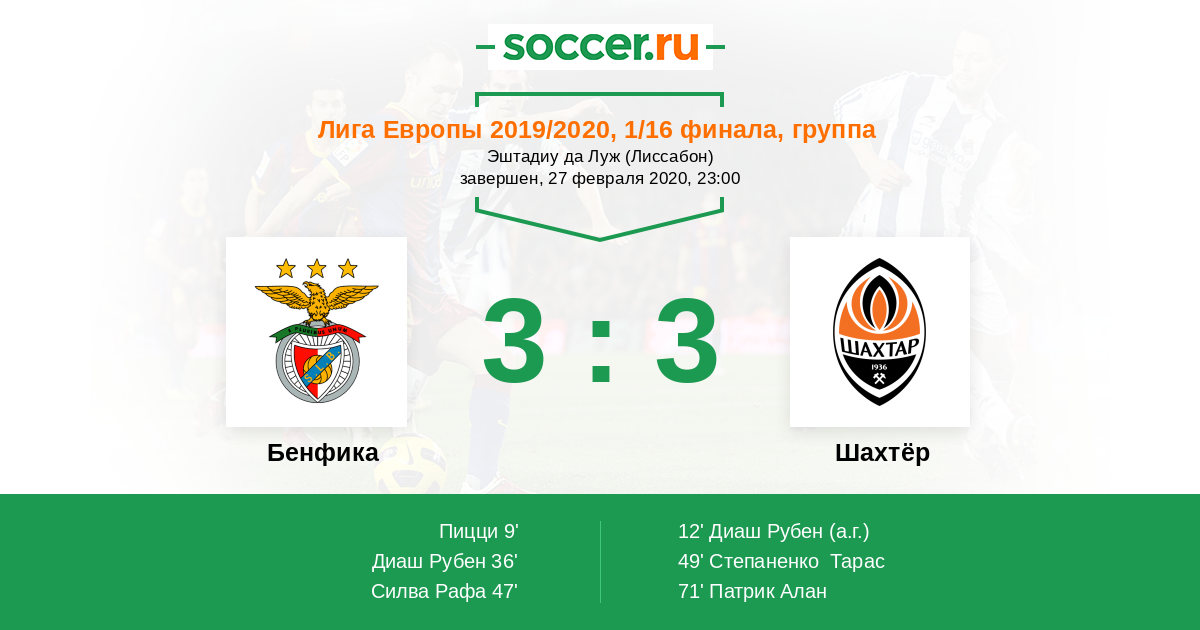 Протокол матча Бенфика против Шахтёр
