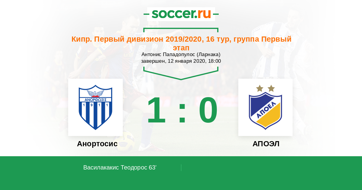 Протокол матча Анортосис против АПОЭЛ