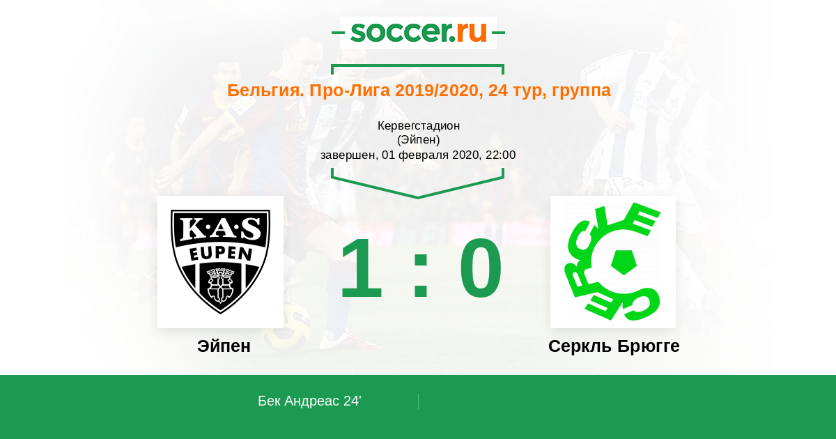 Протокол матча Эйпен против Серкль Брюгге