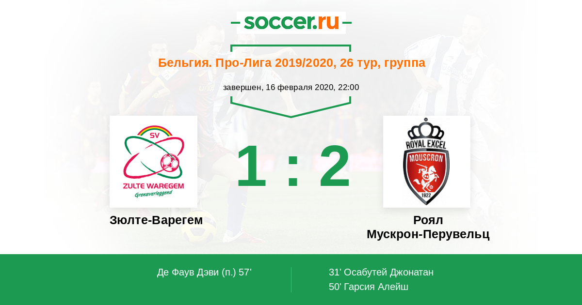 Протокол матча Зюлте-Варегем против Роял Мускрон-Перувельц