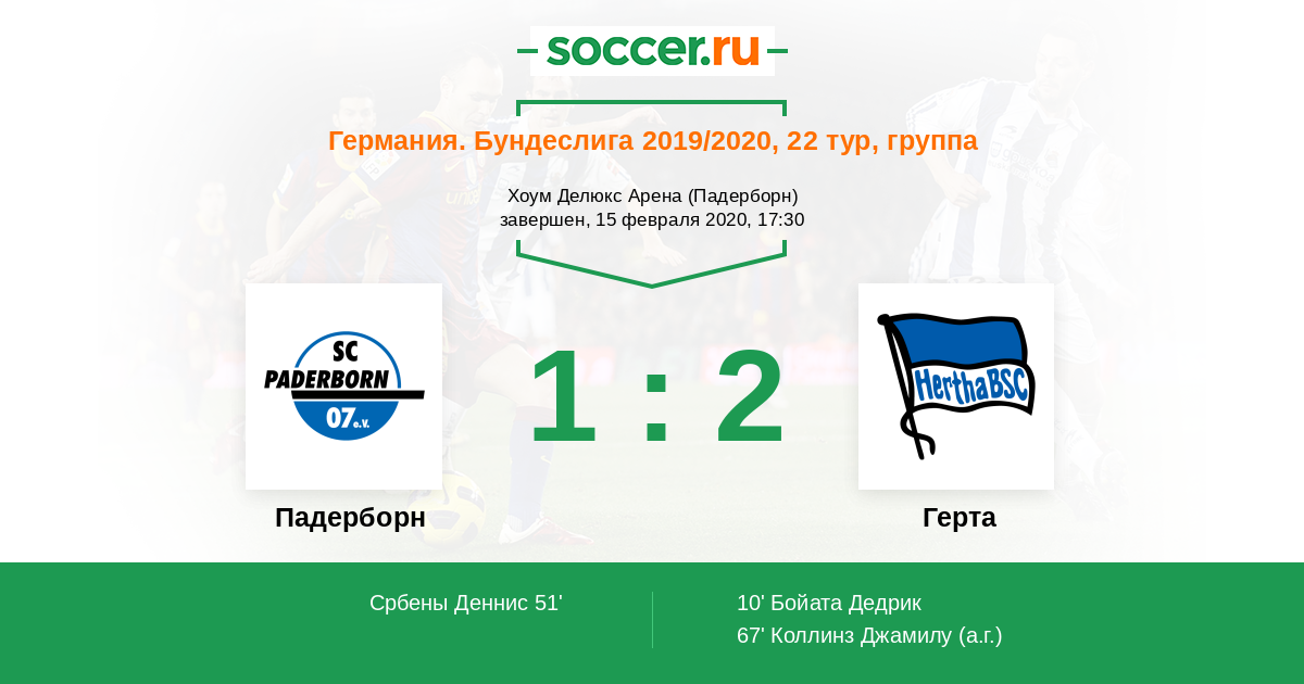 Протокол матча Падерборн против Герта