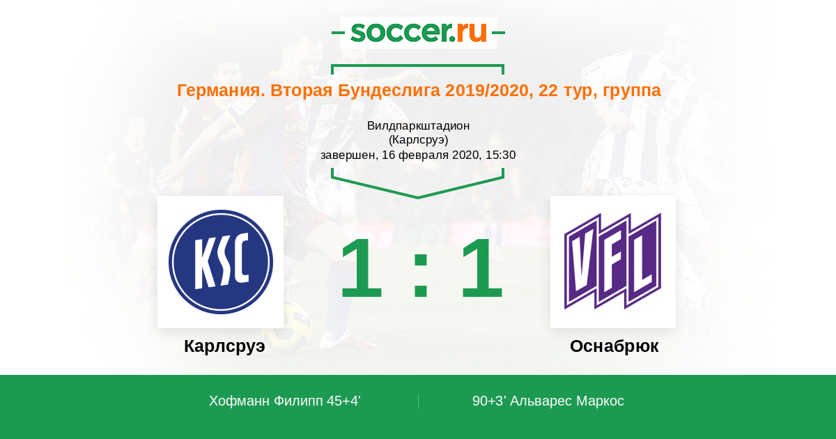 Протокол матча Карлсруэ против Оснабрюк