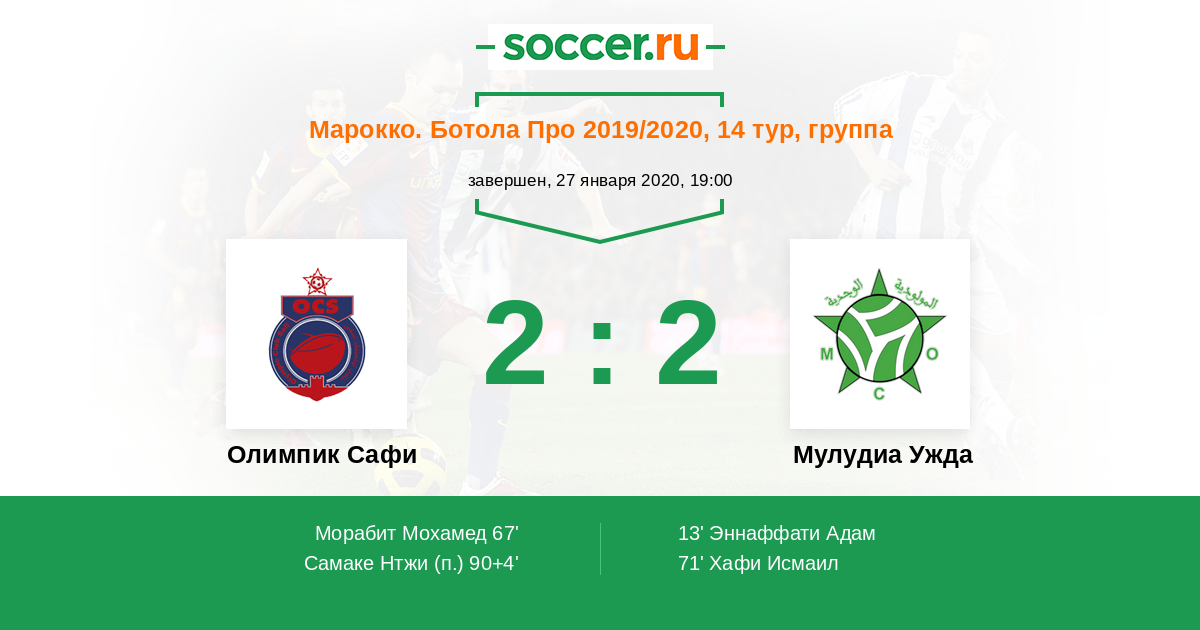 Протокол матча Олимпик Сафи против Мулудиа Ужда