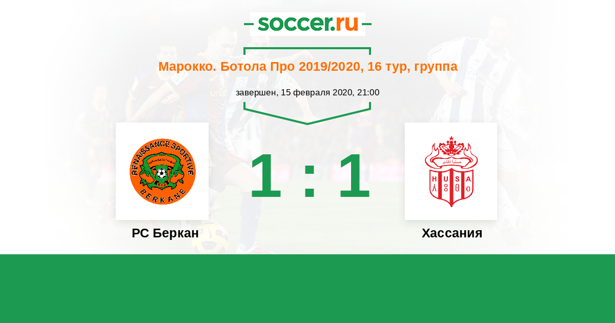 Марокко. Ботола Про 18.04.2021 Хассания Логотип футбольный клуб Хассания (Агадир) 1:2 Логотип футбольный клуб РС Беркан РС Беркан