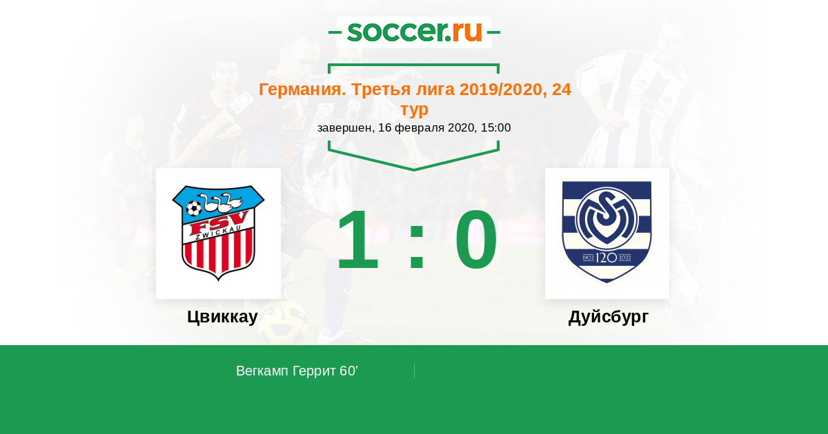60' (1:0) Вегкамп Геррит (9) (Шретер Моррис (17))