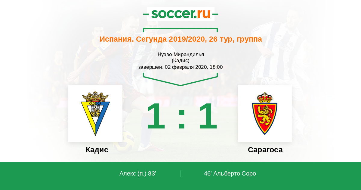 Протокол матча Кадис против Сарагоса